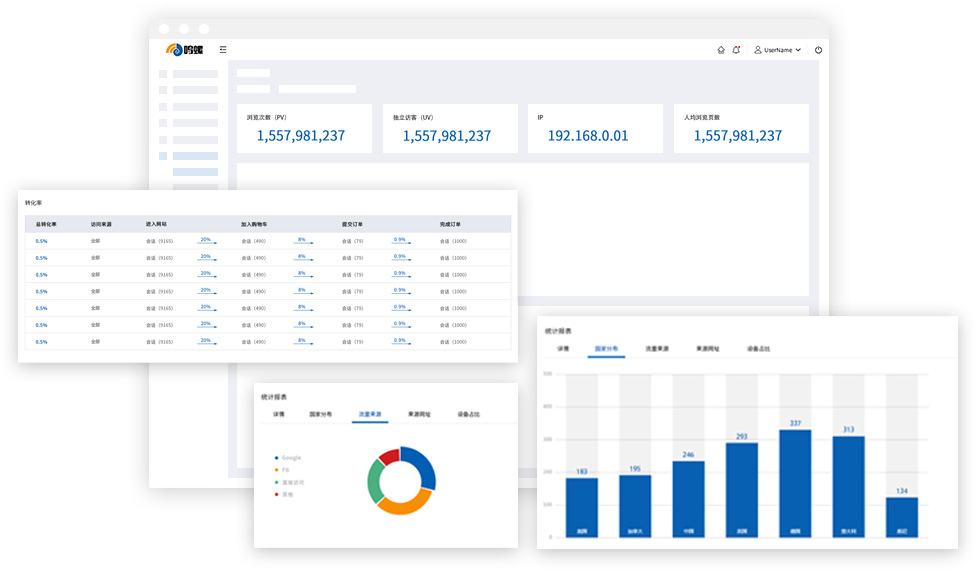 >>整合网站数据对网站的流量,订单,复购,热门产品,转化率,页面浏览深度等进行详细统计